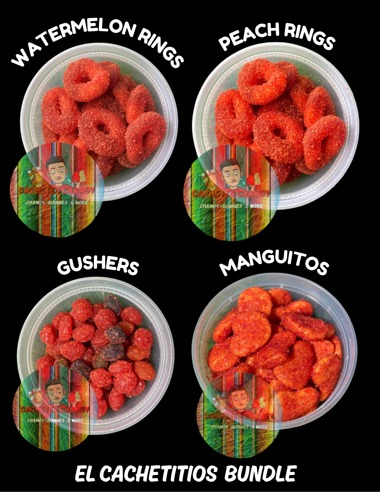 Get ready to party in your mouth with Cachetitos Fav Box! We've packed this box with all the candy essentials: juicy peach rings, crisp watermelon rings, flavor-packed gushers, and our beloved manguitos—all dressed up in that irresistible dulces enchilados style with a spicy-sweet punch. Whether you're treating yourself or sharing the love, this mix delivers non-stop excitement and delicious surprises with every handful.